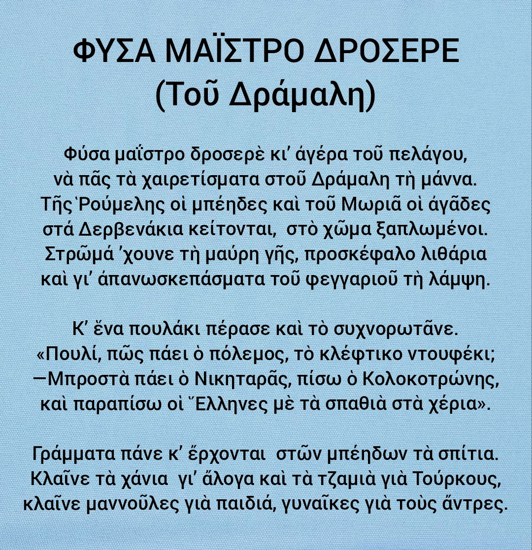 Φύσα μαΐστρο δροσερὲ κι ἀγέρα τοῦ πελάγου (Τοῦ Δράμαλη)